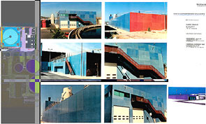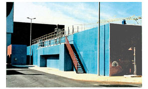 Rattrapage du béton lasuré defectueux par des aplats en camaieu de bleu