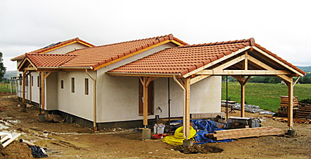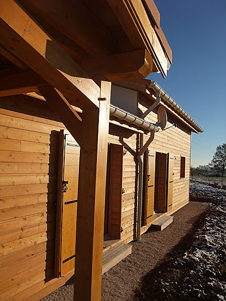 ossature et parements bois HQE - chauffage solaire thermique - enduits écologiques