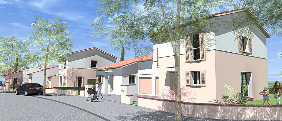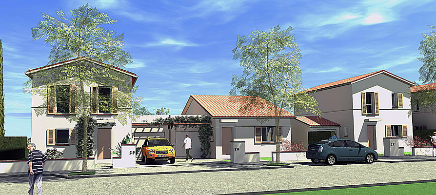 Etude et réalisation : 14maisons de ville en secteur traditionnel - Habitation économique basse consommation : 1200€/m2