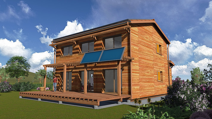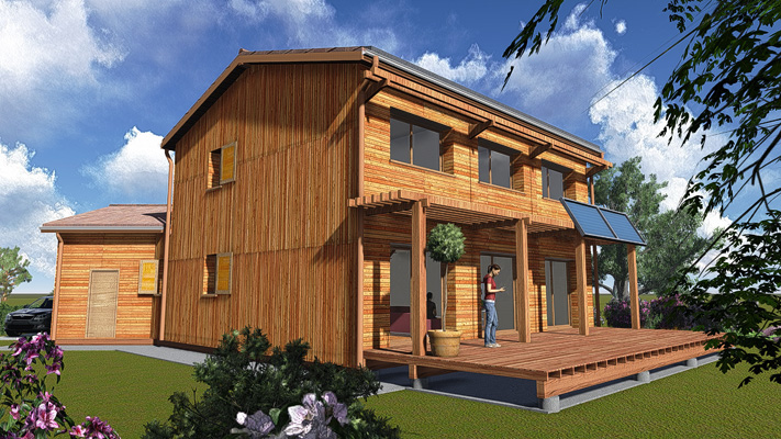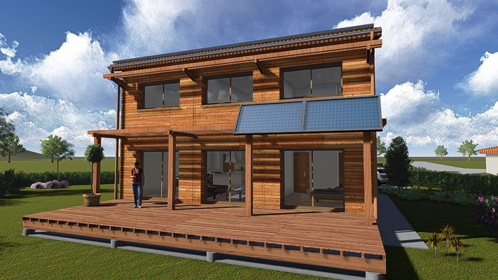 d'une maison à énergie positive - double ossature bois - <