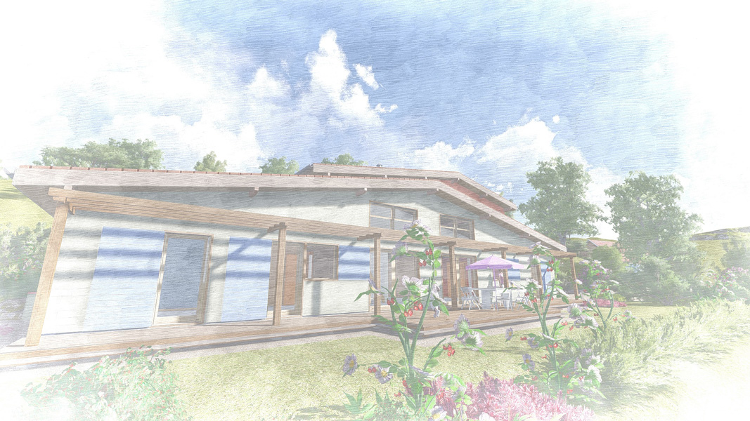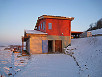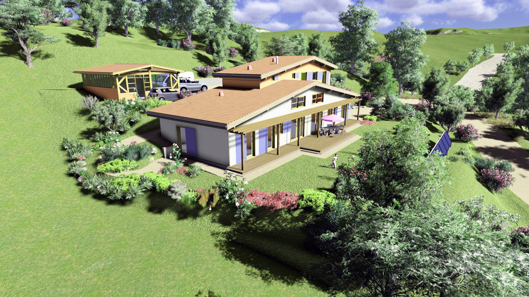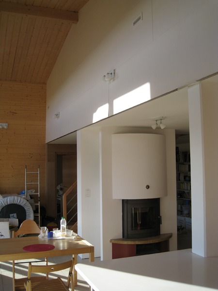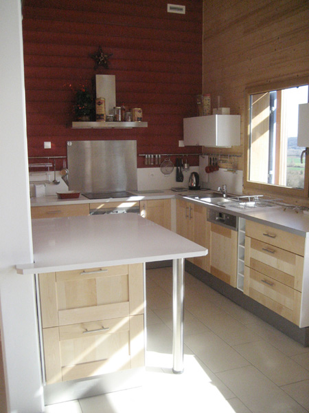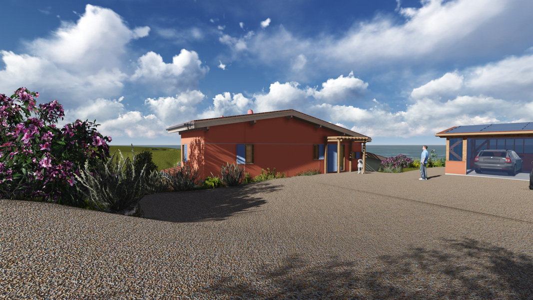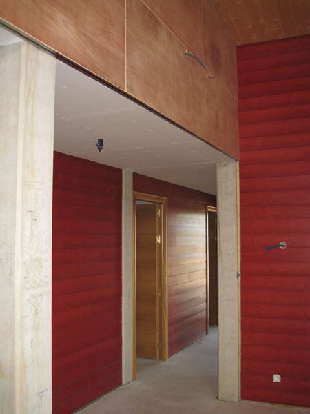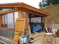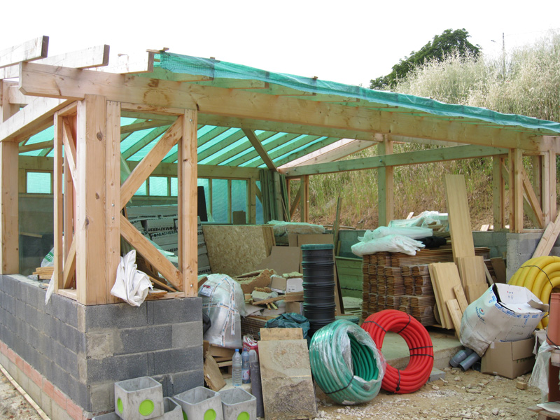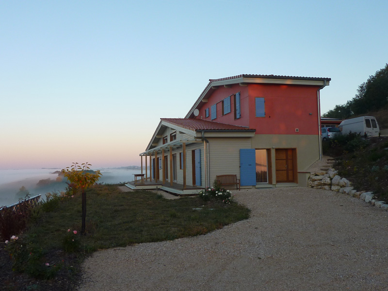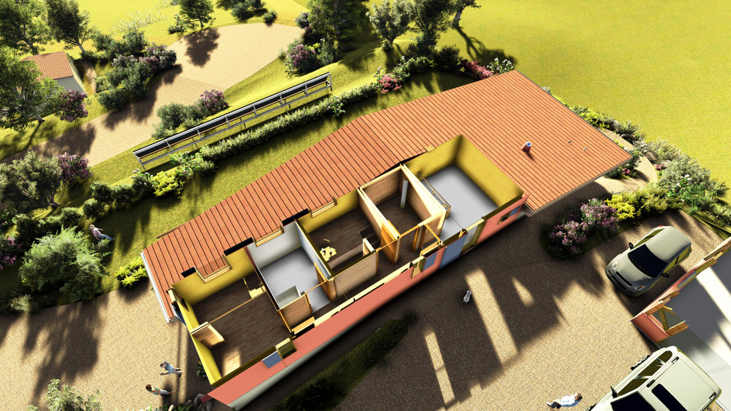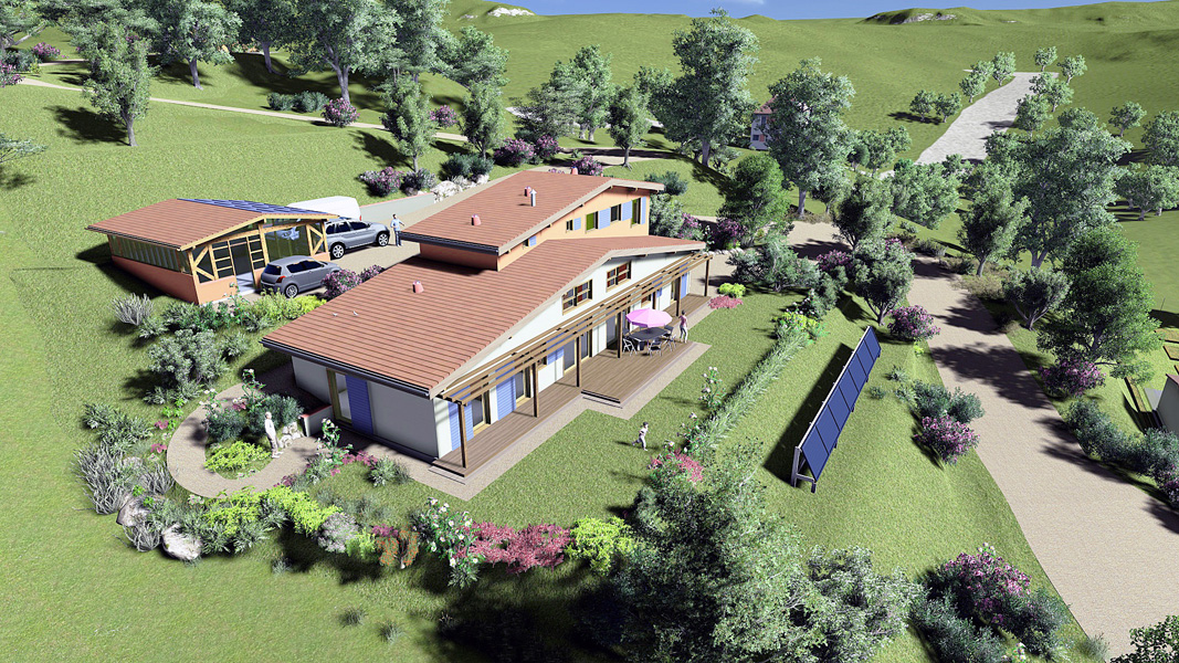 Finalisation d'une maison à très faible consommation d'énergie : - ossature et parements bois HQE - chauffage solaire thermique - electricité photovoltaique - cep 25.8 kWhep/m2/an