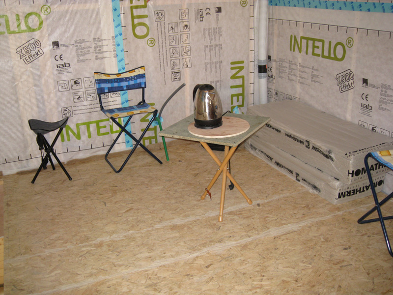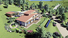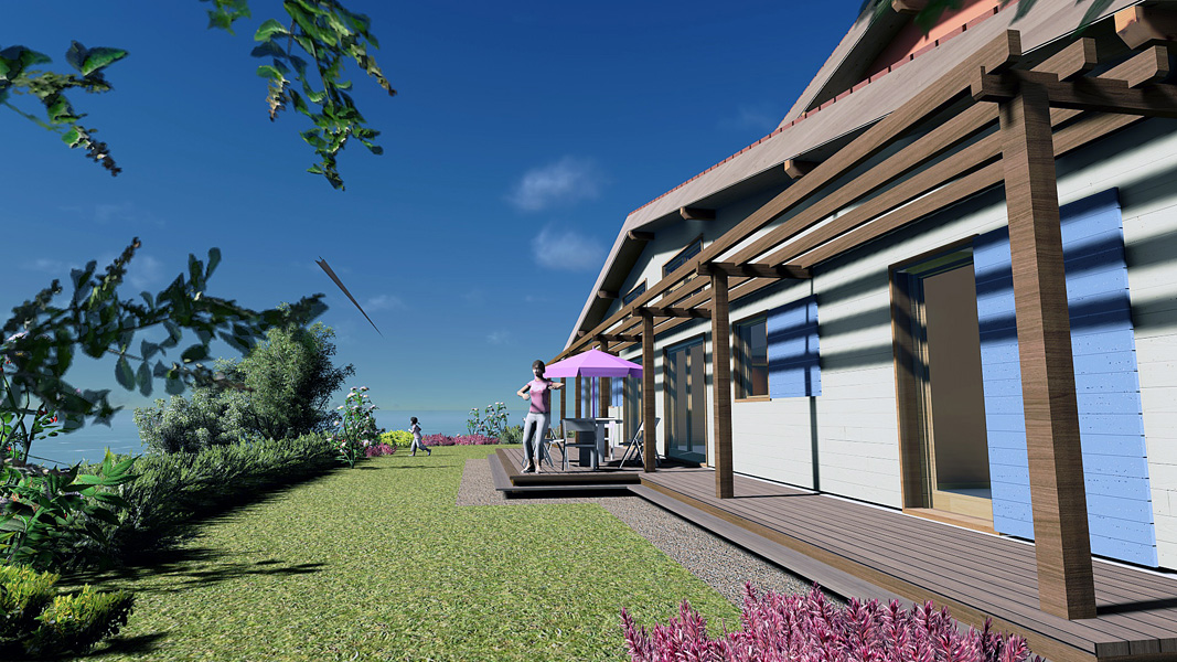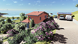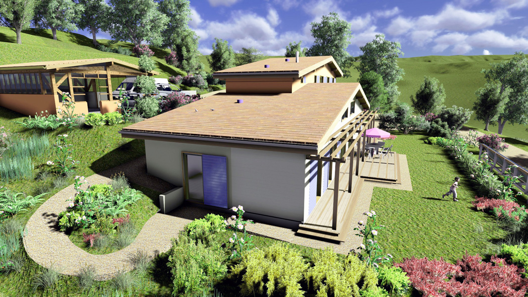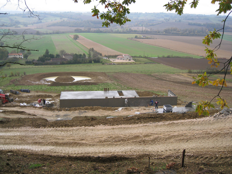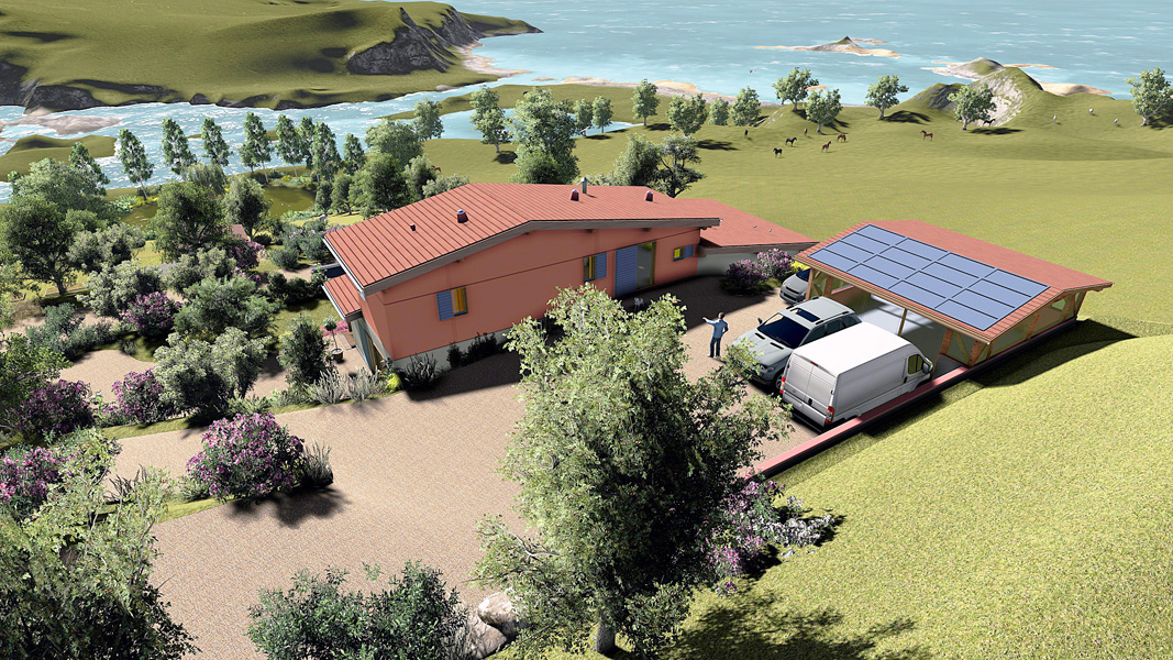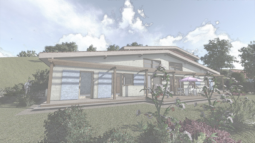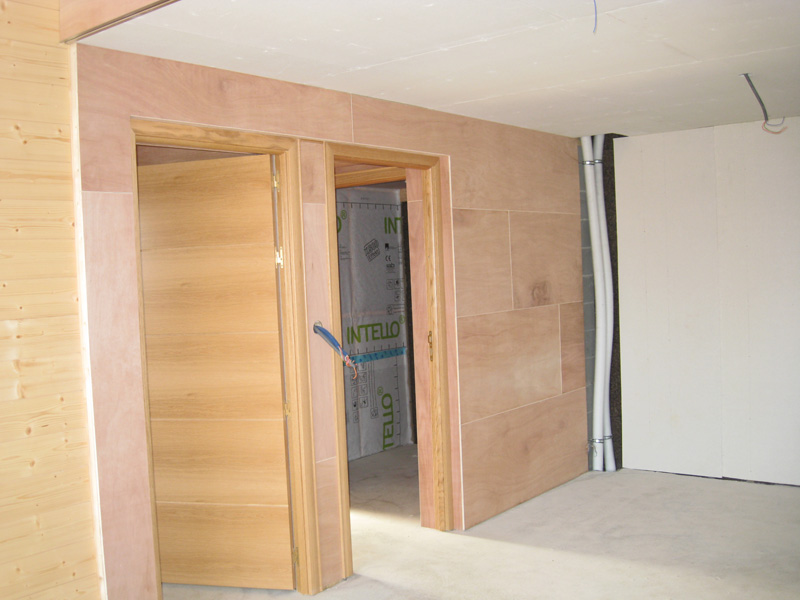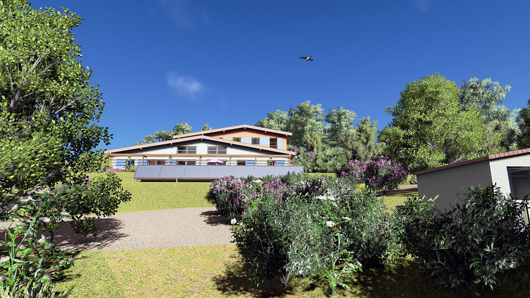 Finalisation d'une maison à très faible consommation d'énergie : - ossature et parements bois HQE - chauffage solaire thermique - electricité photovoltaique - cep 25.8 kWhep/m2/an