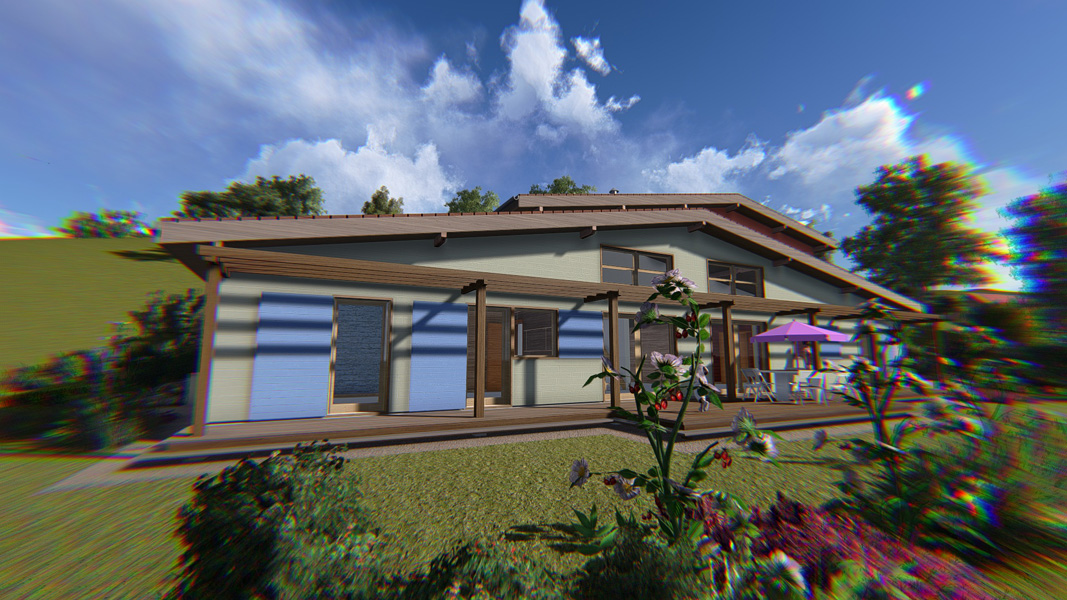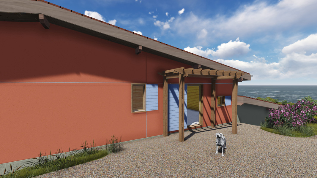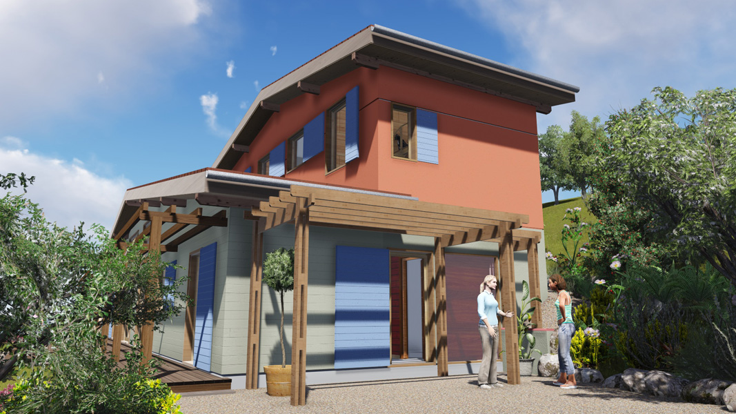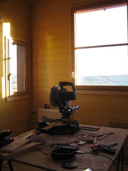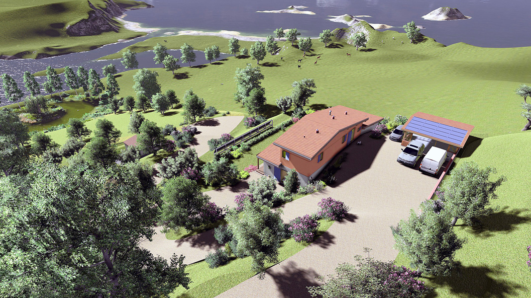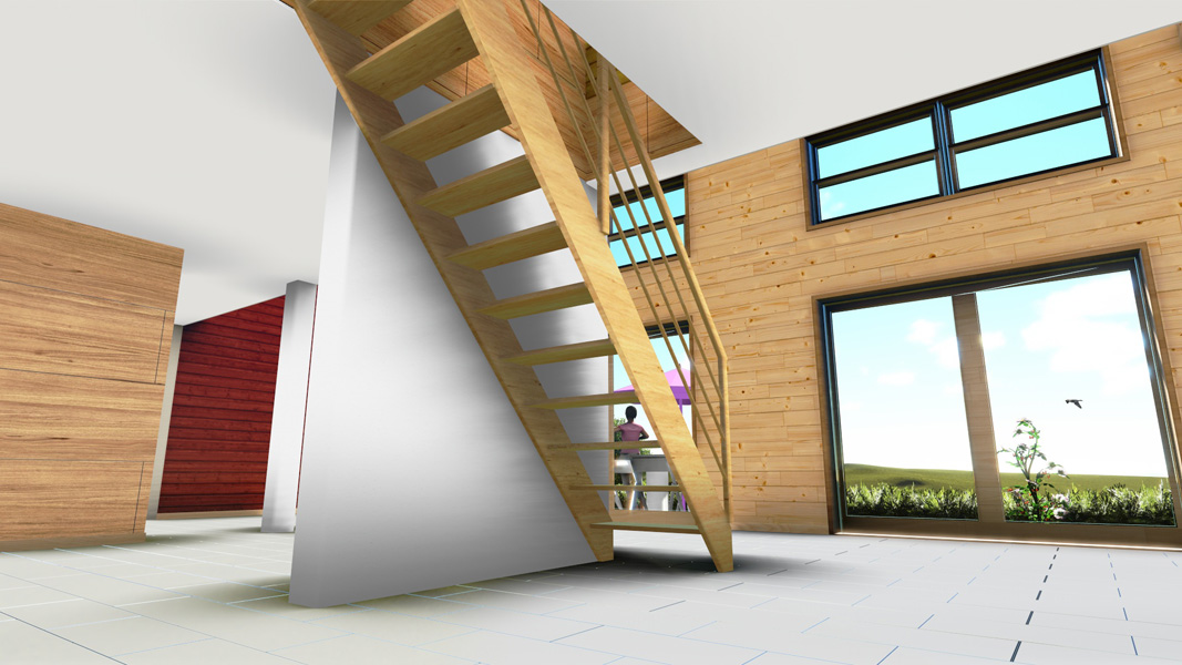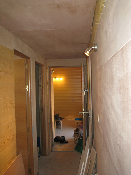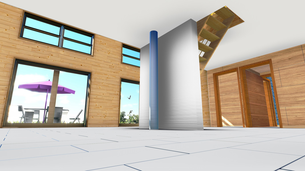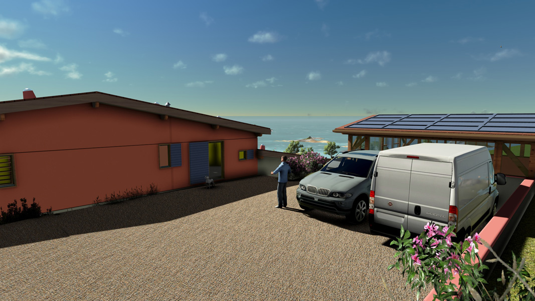Finalisation d'une maison à très faible consommation d'énergie : - ossature et parements bois HQE - chauffage solaire thermique - electricité photovoltaique - cep 25.8 kWhep/m2/an