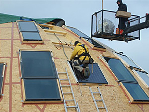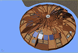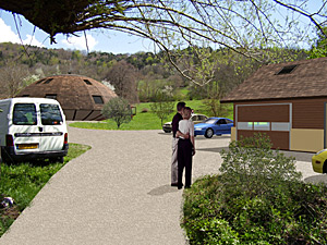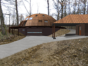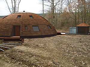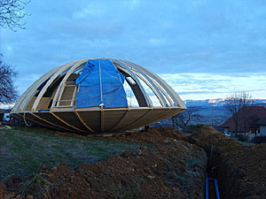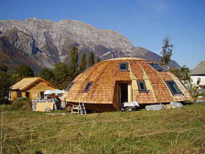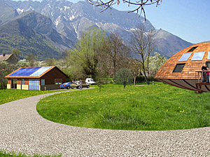Chauffayer 05 - Projet 2007 : Gîte d'accueil Le Châlet Tournesol - maison rotative de rayon 7.63m - Batiment annexe solaire actif et passif :
